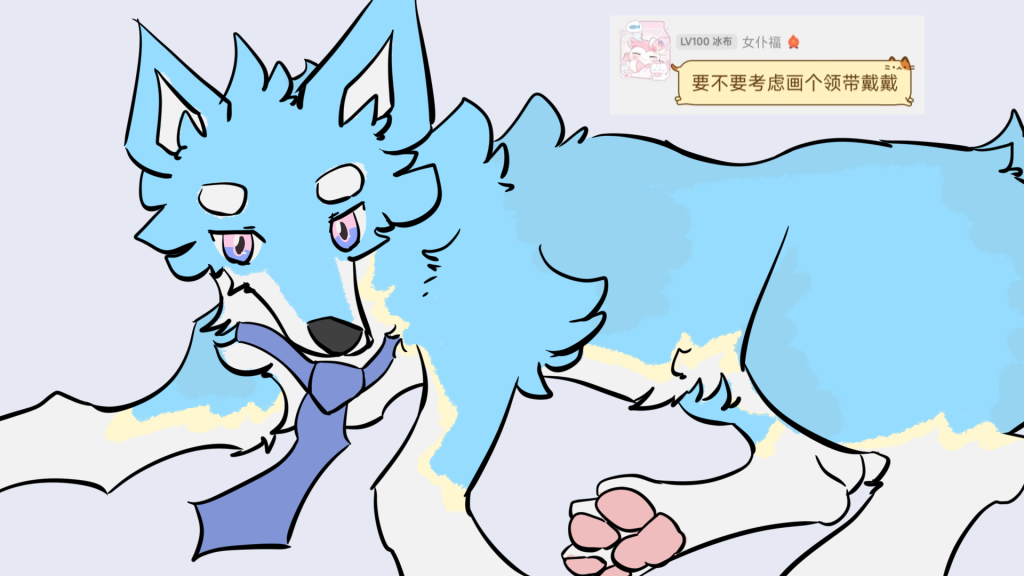 我考入了上海海事大学就读本科网络工程专业,临港人群稀少,我在这里调整、尝试、探索人生方向。我一直都喜欢小动物,为了和以前的自己做区分,我起了新网名“粉糖粒子”,一个比较可爱粉亮的名字。并且我设计了第一个兽设,他是我的映射,没有名字。遇到的好友们叫他“小蓝狗”。网名随后简化为粉糖并改成我现在的群组名称。